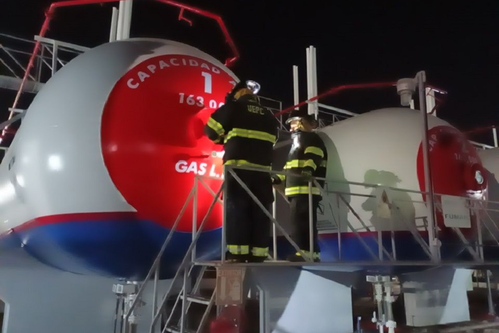 Oficiales de la UEPC, en coordinación con la Unidad Municipal de Protección Civil de Villa de Álvarez, realizaron inspecciones en las instalaciones de dos empresas gaseras (Global Gas y Emi Gas), donde no fueron localizadas fugas en sus instalaciones.