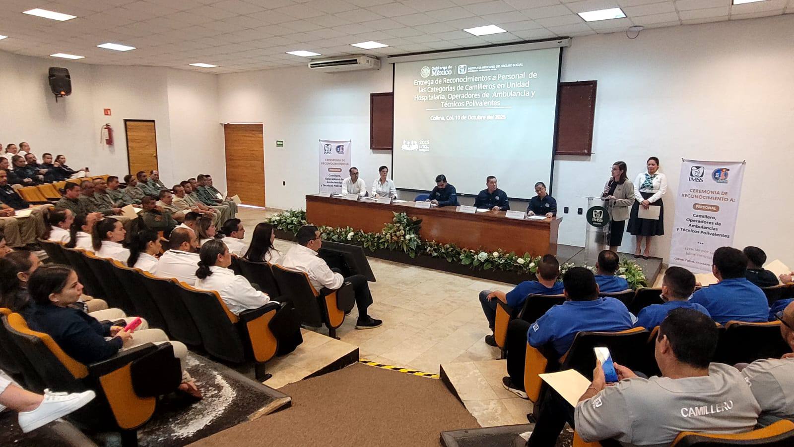 El Instituto Mexicano del Seguro Social (IMSS) en Colima realizó la Ceremonia Conmemorativa del Día del Personal Camillero en unidad Hospitalaria, Operadores de Ambulancias y Técnicos Polivalentes en el auditorio del Archivo Histórico de la Universidad de Colima, con el propósito de reconocer públicamente la dedicación, esfuerzo y compromiso del personal que cumple una función esencial en la atención integral de los pacientes y en el funcionamiento operativo del Instituto.