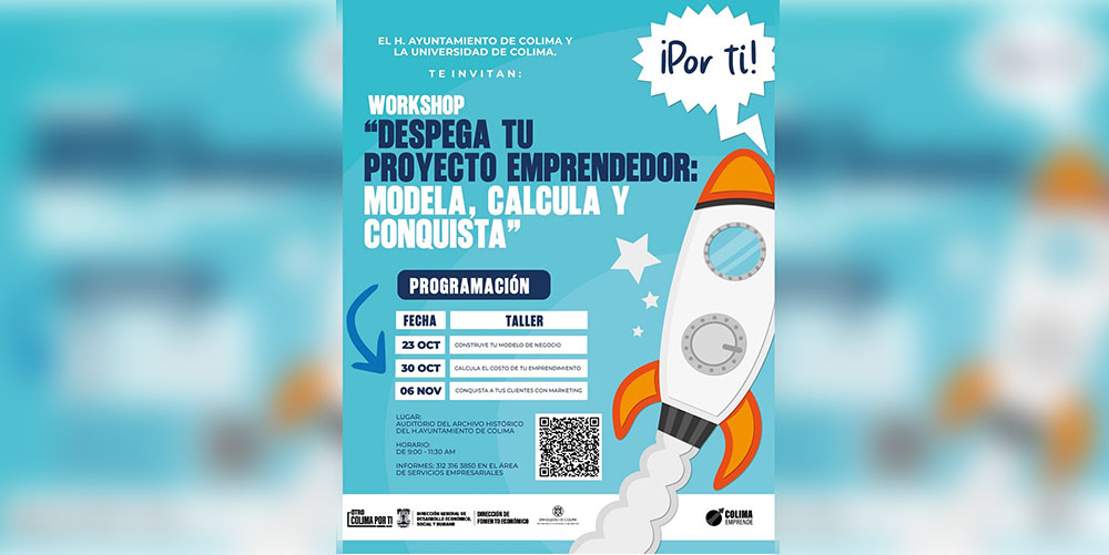 El presidente municipal de Colima, Riult Rivera Gutiérrez, dio a conocer que como una manera de impulsar el talento local y la cultura emprendedora y seguirle apostando a tener un Colima más innovador se llevará a cabo el Workshop “Despega tu proyecto emprendedor: Modela, Calcula y Conquista”.