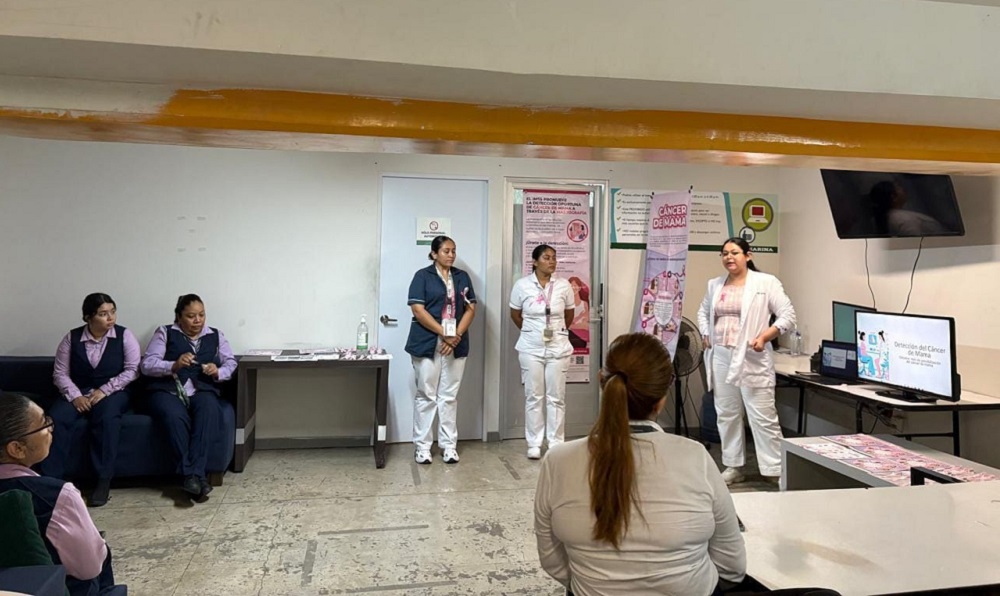 El Instituto Mexicano del Seguro Social (IMSS) en Colima, a través de la Unidad de Medicina Familiar (UMF) No. 17, continúa con su estrategia de prevención y sensibilización sobre el cáncer de mama, llevando información y orientación directamente a los centros laborales del estado. Esta iniciativa tiene como objetivo fomentar una cultura de prevención, promover la detección temprana y fortalecer el bienestar integral de las trabajadoras y trabajadores.
