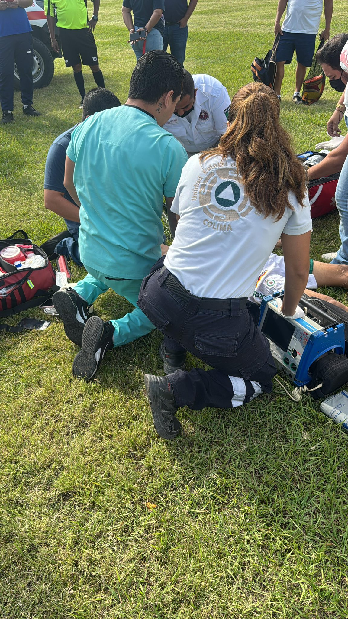Un joven de 14 años que sufrió un paro cardiaco, mientras jugaba futbol en el campo deportivo del fraccionamiento Residencial Esmeralda Norte, en la zona norte de la capital de Colima, salvó su vida gracias a la rápida y coordinada intervención de la Unidad Estatal de Protección Civil (UEPC) y del Centro Regulador de Urgencias Médicas (CRUM), con el apoyo de un médico y un enfermero que se encontraban en el lugar y el uso de un desfibrilador pediátrico.