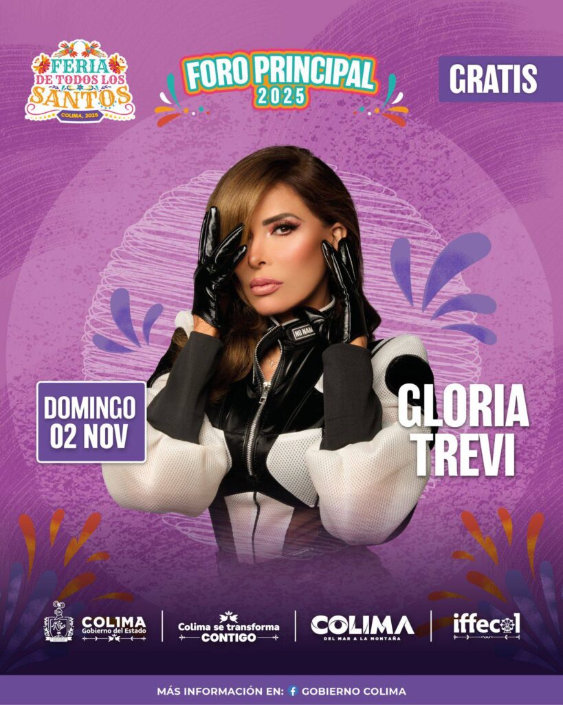 En la agenda de actividades para este domingo destaca la presentación estelar de la diva del pop, Gloria Trevi, en lo que será el primer concierto masivo gratuito que ofrece el Gobierno del Estado de Colima en el Foro Principal de la #FeriaDeColima, a partir de las 9:00 de la noche