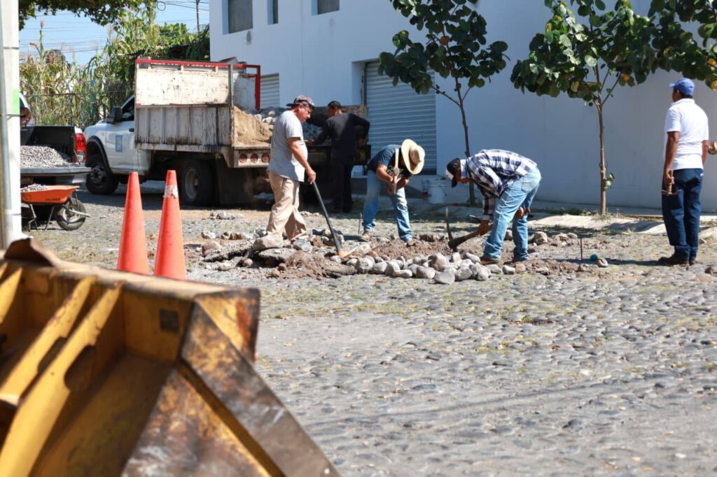 Este martes cuadrillas de trabajadores municipales estuvieron tapando los baches con empedrado sobre las avenidas Constitución, Ignacio Sandoval, así como la calzada Galván y calle Leandro Valle.