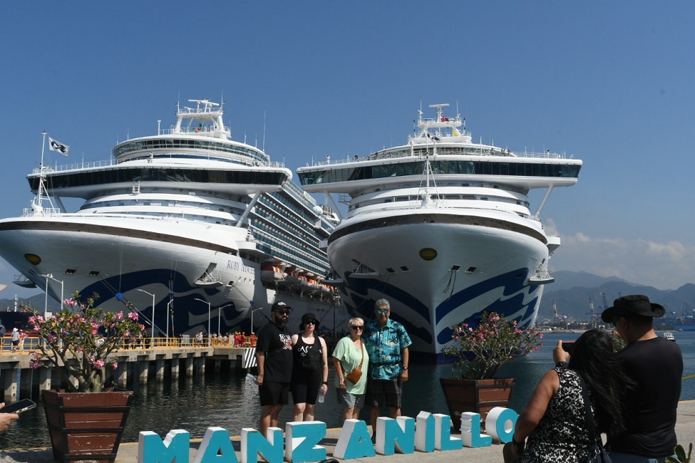 El puerto de Manzanillo vivió este miércoles 19 de noviembre una jornada de gran dinamismo turístico, con el arribo simultáneo de dos cruceros -Ruby Princess y Sapphire Princess-, como parte de la temporada 2025-2026, informa la Subsecretaría de Turismo (Subsectur) del Gobierno del Estado de Colima, que estima que la llegada de estas embarcaciones dejará una derrama superior a 6.7 millones de pesos, derivada de gastos de pasajeros y tripulación durante su estancia.