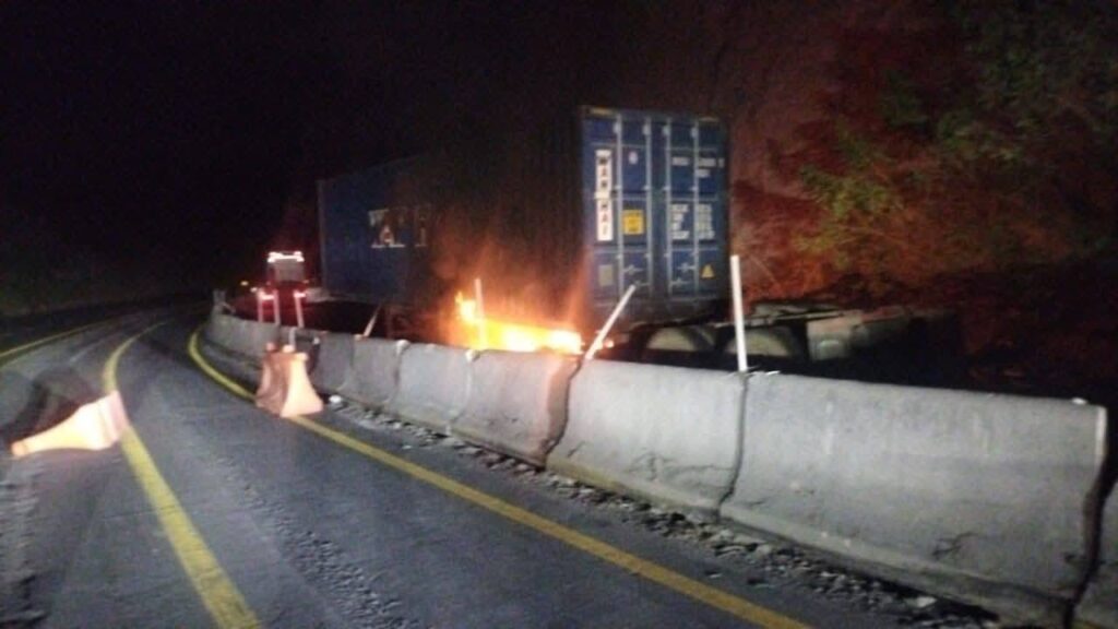 La Unidad Estatal de Protección Civil (UEPC) del Gobierno del Estado de Colima informa que la madrugada de este miércoles se registró el incendio de un contenedor de tráiler sobre la autopista Colima–Manzanillo, antes de llegar al tramo conocido como ‘La Salada’, en dirección de la ciudad capital hacia el puerto.