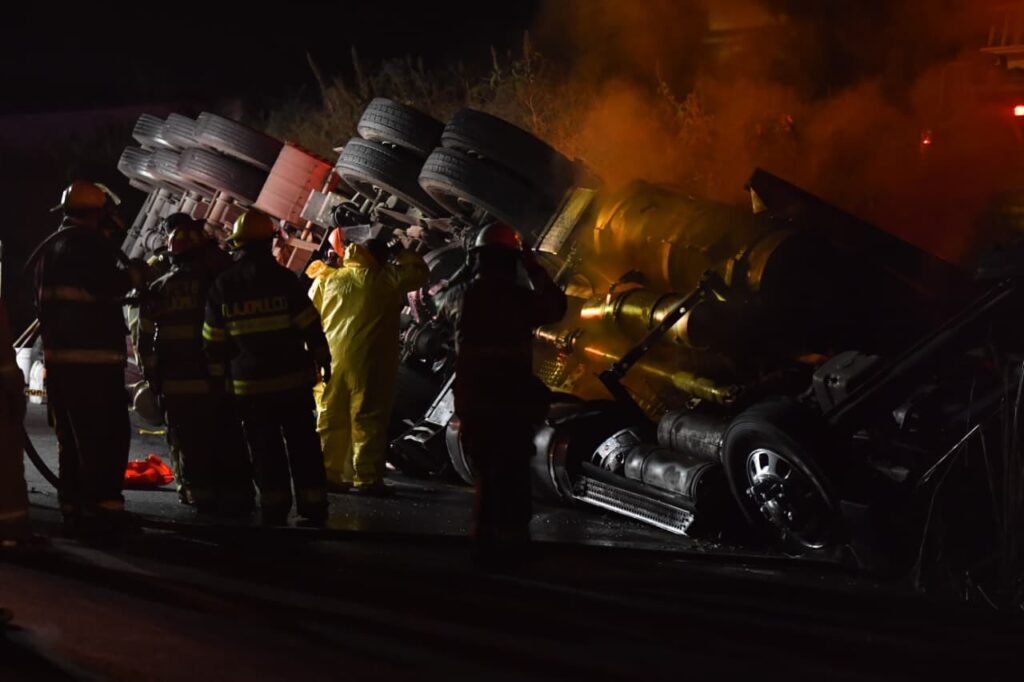 Continúan Atendiendo Volcadura de Pipa Que Transportaba Material Peligroso, Sobre la Carretera Guadalajara-Colima