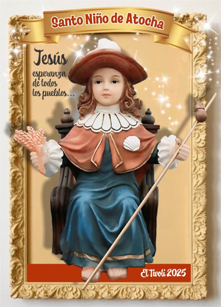 Una breve breve historia de Santo Niño de Atocha. Nace en España durante la reconquista, donde, ante la prohibición de visitas a presos cristianos, un niño peregrino aparecía misteriosamente para llevarles comida y agua, calzado con huaraches y sombrero, revelándose su identidad al ver sus zapatos gastados, un culto que se popularizó en México, especialmente en Plateros comunidad de Fresnillo, Zacatecas, como protector de viajeros y mineros.