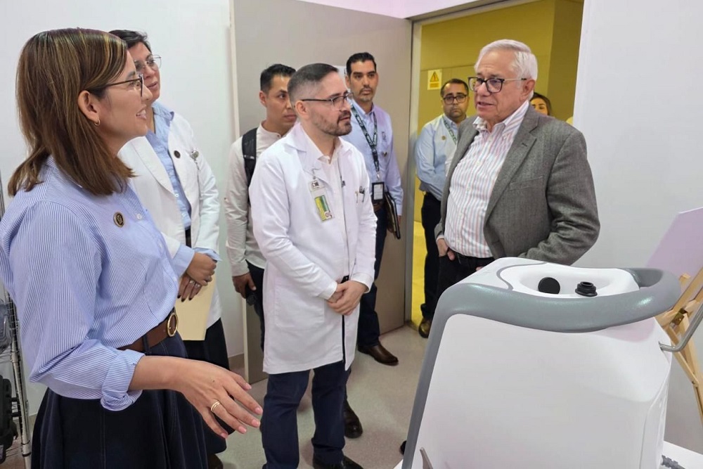 El doctor Gaviño Ambriz felicitó a la doctora Borrego Pérez por la inauguración de la Sala de Hemodinamia en el HGZ No. 1 en Villa de Álvarez, obra que contó con una inversión superior a 52 millones de pesos. En esta sala se realizaron 146 cateterismos y seis colocaciones de marcapasos, de abril a diciembre de 2025.