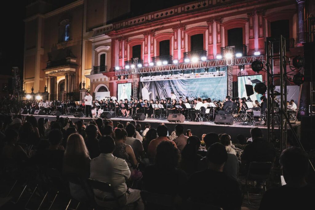 Colima, Col., 16 de marzo de 2026.- Con gran éxito se llevó a cabo este domingo el Cuarto Campamento Nacional de Bandas Sinfónicas Infantiles y Juveniles, en la explanada de Palacio de Gobierno, en el cual participó en la organización el Gobierno Municipal de Colima que preside Riult Rivera Gutiérrez, a través de la Dirección General de Educación, Cultura y Recreación.