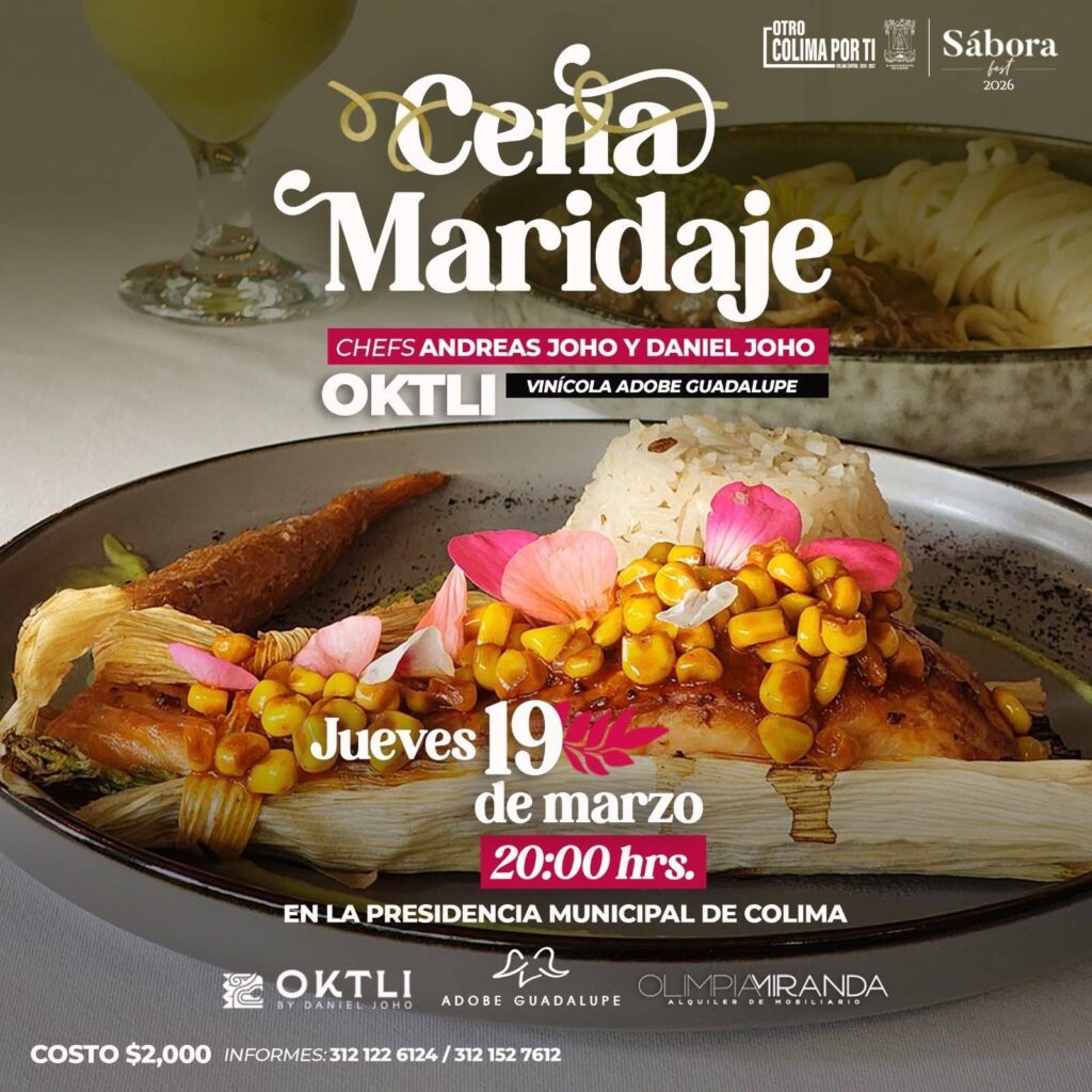 Colima, Col., 17 de marzo de 2026.- Gran interés ha generado entre los colimenses la cena maridaje que se realizará este jueves 19, desde las instalaciones del patio central de la presidencia municipal de Colima.