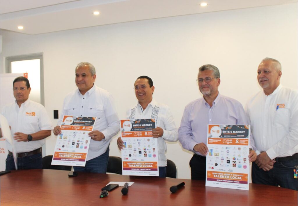 El Secretario General de la Sección 6 del SNTE el prof. Miguel Ángel Rivera Huezo, junto con el prof. Juan Manuel Bedolla Representante del CEN para el SNTE 6, y el Secretario de Desarrollo Económico de Colima, Francisco Rodríguez García presentaron el proyecto de este domingo 19 de abril el “SNTE 6 Market de Emprendedores” en la Zona Arqueológica de La Campana, con la participación de cerca de 60 expositores, todos trabajadores de la educación.