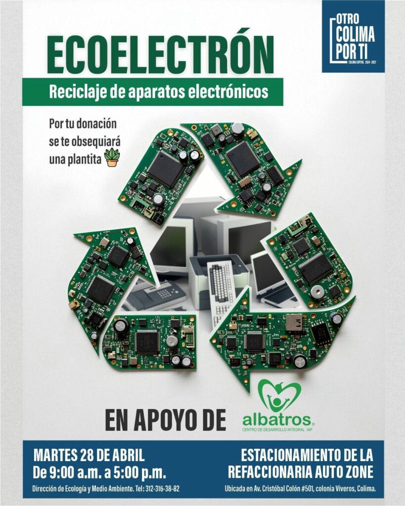 COLIMA, Col., 20 de abril de 2026.- El Ayuntamiento de Colima, a través de la Dirección de Ecología y Medio Ambiente, refuerza su compromiso social y ambiental con el programa mensual “Ecolectrón”, una campaña de acopio de residuos electrónicos.