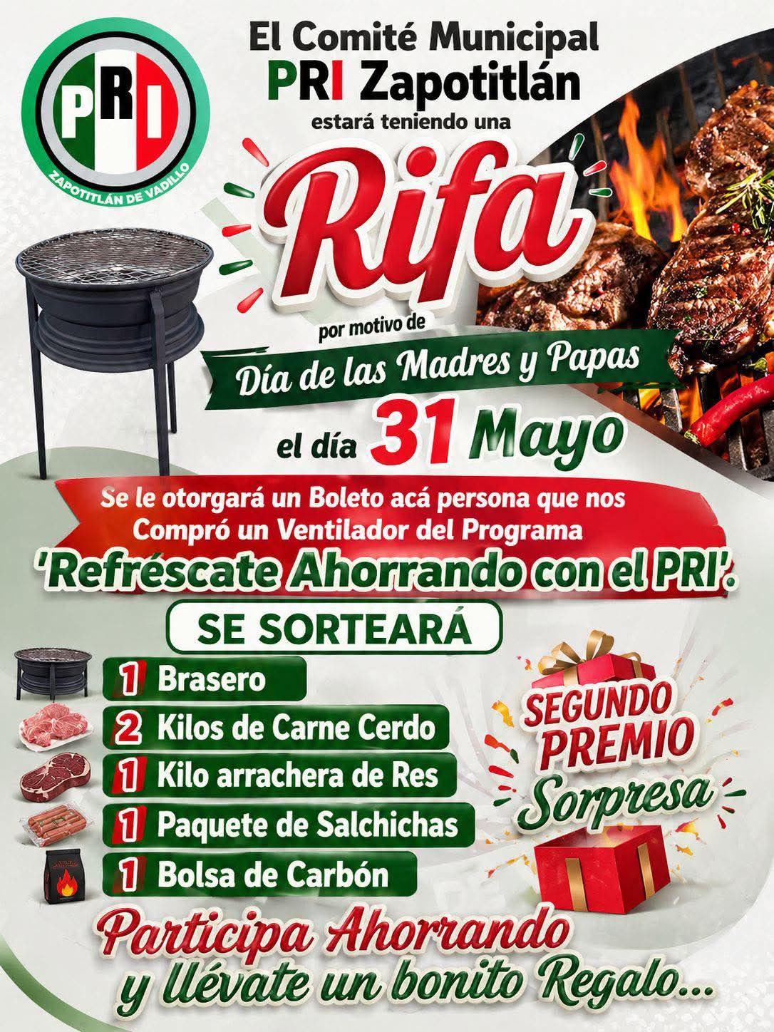 En su página de Facebook, el PRI Zapotitlán de Vadillo, Jalisco anunció una rifa especial para mamá y papá.